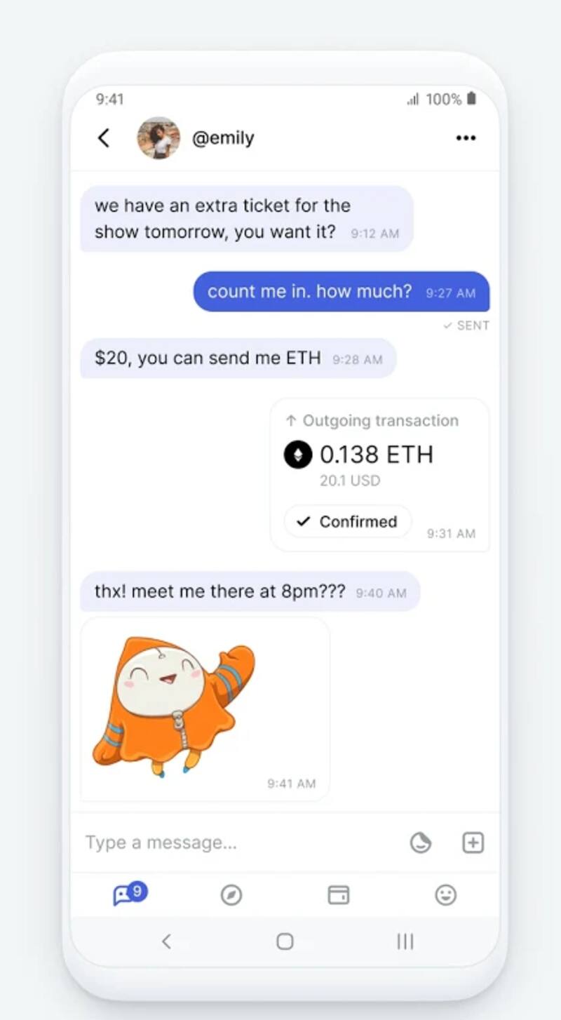 El monedero está integrado con un messenger privado para permitir que cualquier persona, en cualquier lugar, envíe y reciba pagos en criptomonedas a través de la interfaz del chat. La wallet también funciona con el navegador web3, lo que permite a las personas interactuar con dapps (aplicaciones descentralizadas), incluidas herramientas DeFi. En momentos donde apps de mensajería hegemónicas como WhatsApp están siendo cada vez más cuestionadas por sus políticas de datos, las propuestas descentralizadas ganan terreno. Status incluye un messenger para chats privados 1:1, chats grupales y canales públicos. Está construido con encriptación de extremo a extremo en todos los mensajes privados de manera predeterminada, así como con una tecnología punto a punto que no requiere servidores de terceros centralizados.