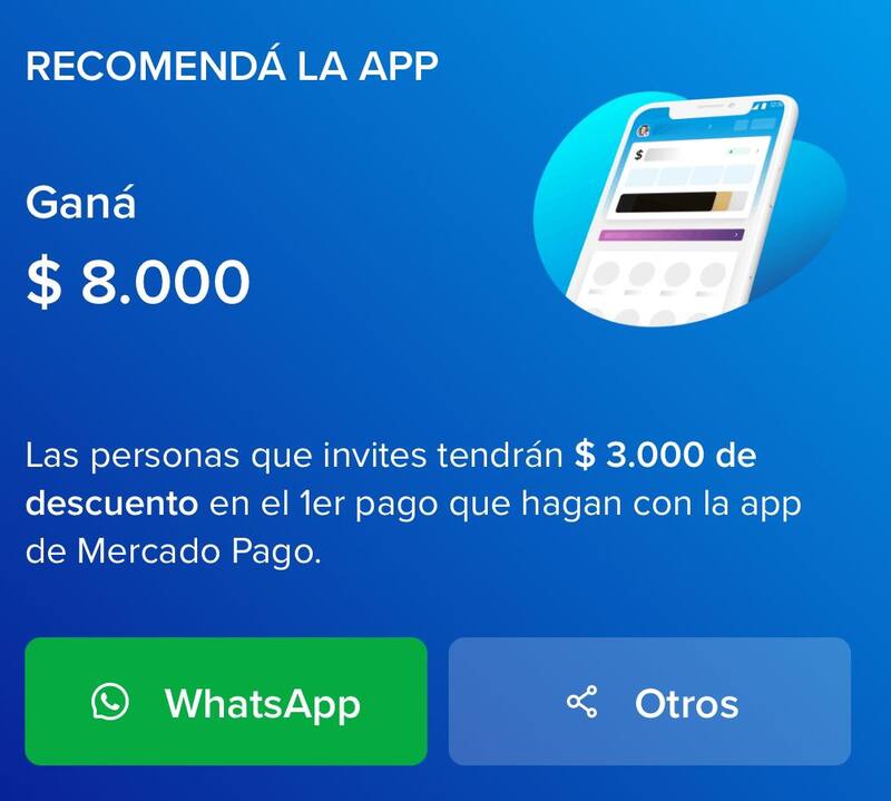 A partir de allí, quien haya recomendado Mercado Pago recibirá la suma de $ 8.000 por persona. Además, "tus invitados obtendrán $ 3.000 de descuento en su primer pago de al menos $ 5.000 (válido por siete días)".