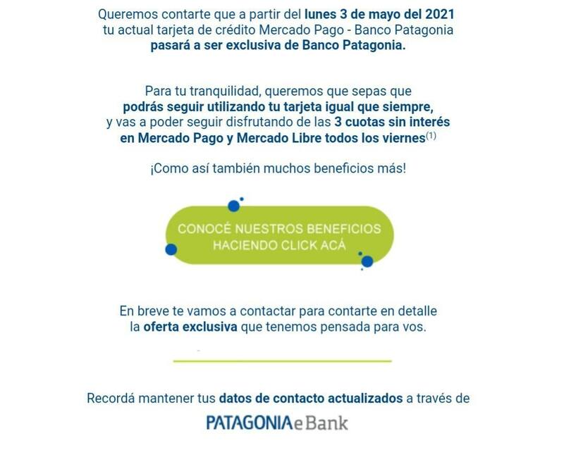 Sin embargo, dejará de funcionar de manera conjunta. Así fue anunciado por Mercado Pago y Banco Patagonia a través de un correo electrónico oficial. En los próximos días, Mercado Pago dejará de ser parte de la tarjeta pero seguirá funcionando en la plataforma.
