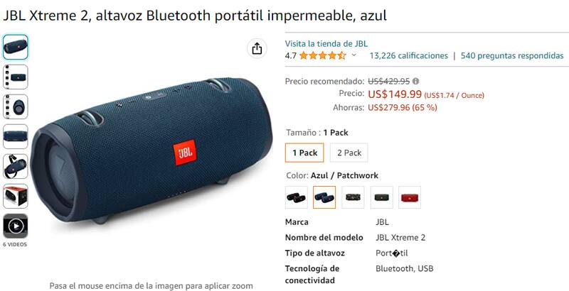 Otra propuesta de Amazon que vale la pena considerar es el parlante XBL Extreme 2, que actualmente cuesta u$s 149,99 en el marketplace. Este equipo ofrece una transmisión inalámbrica por Bluetooth, 15 horas de reproducción y es resistente al agua.