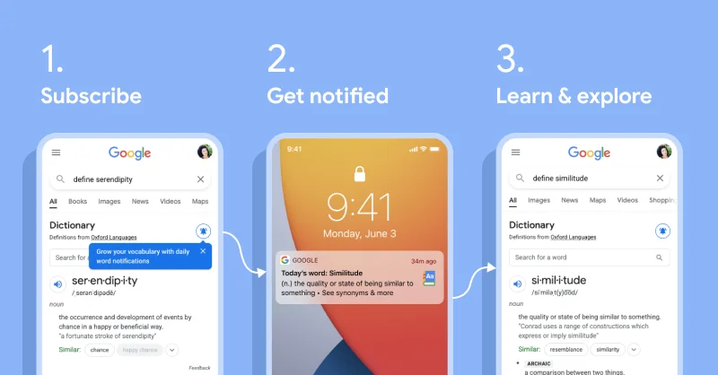Para activar las notificaciones de vocabulario diarias, se debe buscar la definición de alguna palabra en ingles en el celular y, en la esquina superior derecha aparecerá el símbolo de una campana. Cuando se le hace clic, el buscador te va a notificar cada tanto sobre alguna palabra que tal vez no conocías qué significaba.