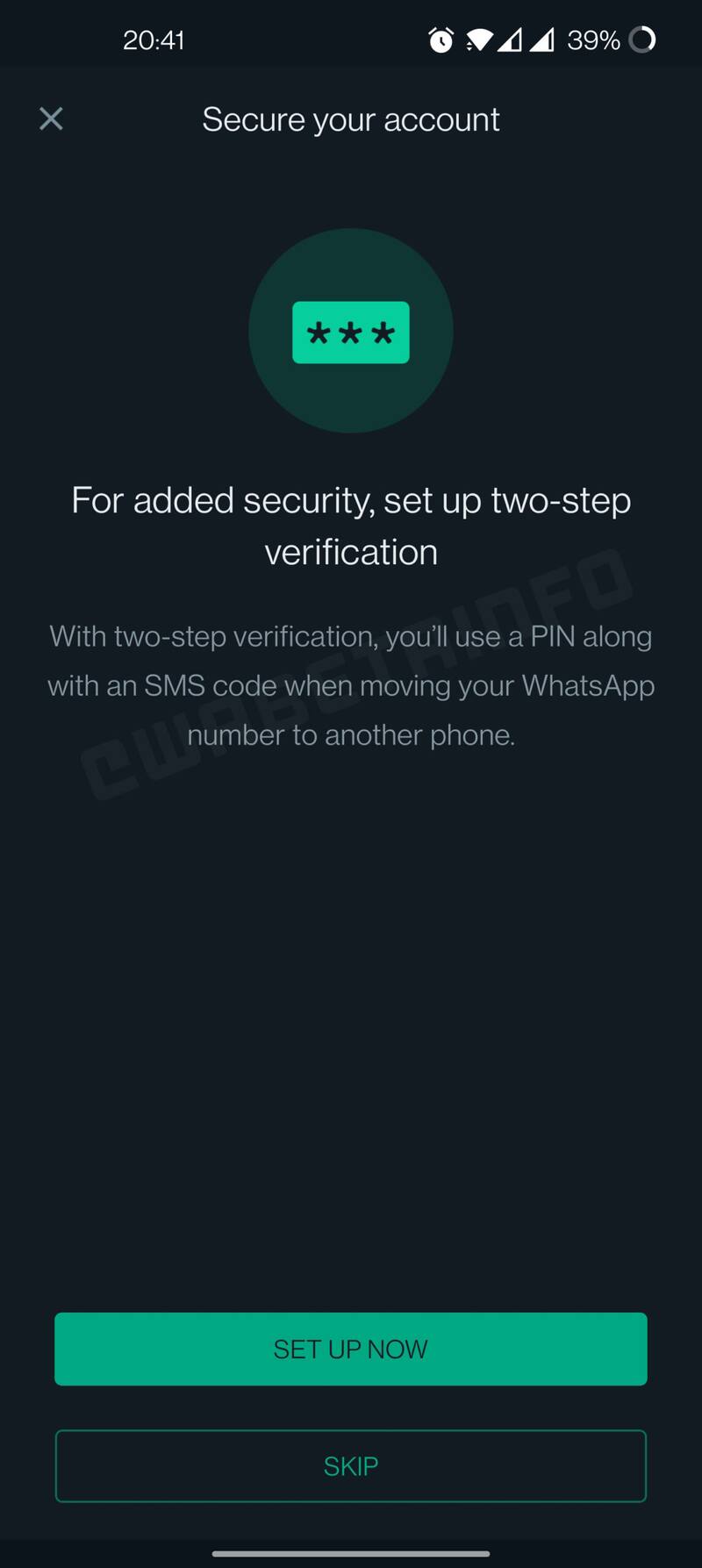 "Con la verificación en dos pasos, vas a poder utilizar un PIN en conjunto con el código SMS que te mandan al iniciar sesión en otro celular", se lee en la leyenda del mensaje.