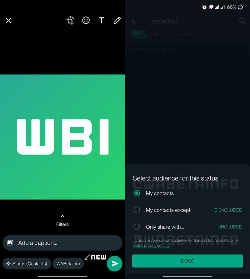 Según varias filtraciones de la versión Beta de la aplicación de mensajería, se encuentra en desarrollo la posibilidad de cambiar el receptor de las fotos en cualquier momento antes de enviarla (incluso una vez que ya se sacó la fotografía).