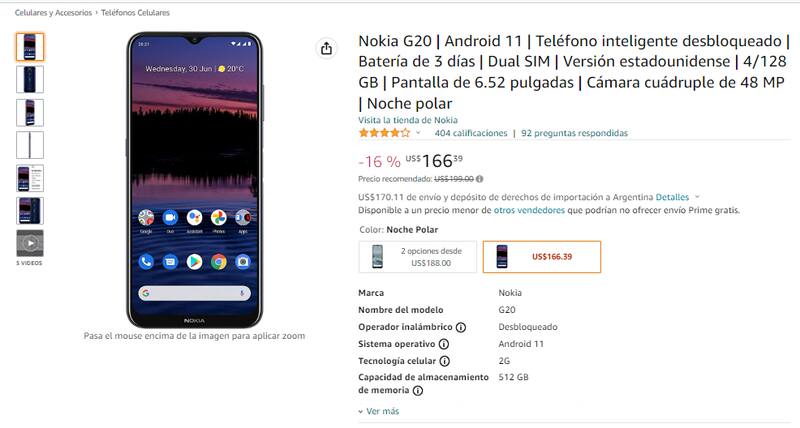 Incluso para quienes no quieran pagar de más, se consiguen modelos baratos que tienen muy buenas prestaciones. En este caso por u$s 166 se consigue un celular Nokia dual sim de cuatro cámaras.