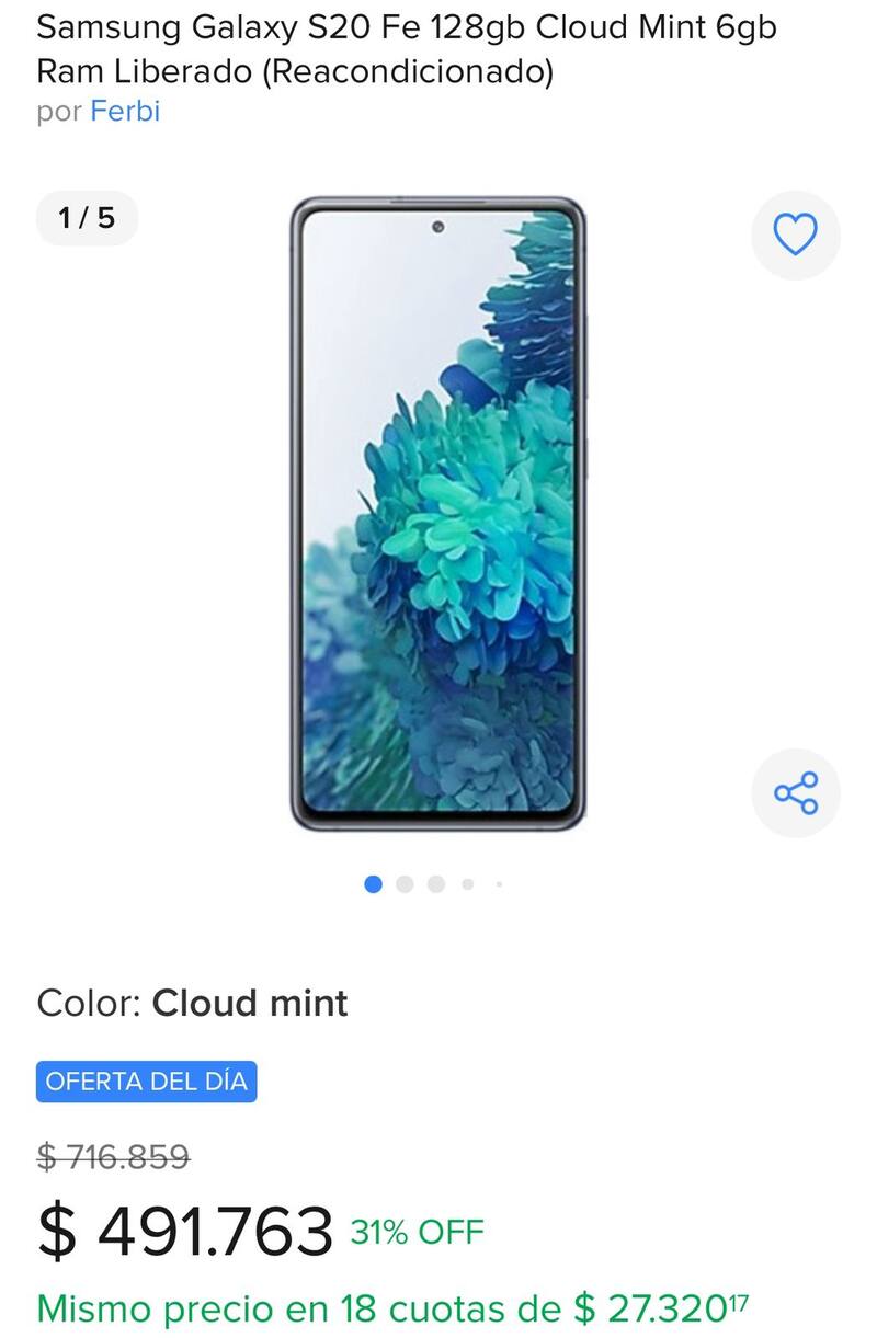 Entre los modelos de celulares que Mercado Libre mantiene por debajo de los 500.000 pesos, se destaca el Samsung Galaxy S20 de 128 GB, cuyo precio es de $ 491.763. El smartphone cuenta con una pantalla de 6,5 pulgadas y cámara frontal principal de 32 mpx (cámara trasera de 12 mpx). Se puede abonar en hasta 18 cuotas sin interés.