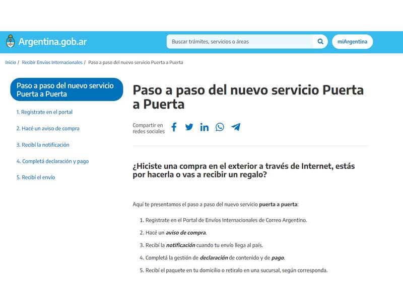 Eso mismo se encuentra a continuación, donde se compara el servicio puerta a puerta por courier con las otras modalidades que ofrece el Gobierno -y que en muchas ocasiones es más complicado-.