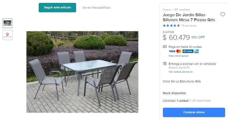 Por último, aquellos que quieren renovar su jardín, podrán encontrar, por ejemplo un juego de sillas-sillones y una mesa compuestos por 7 piezas color gris, con un descuento de 10%, por unos $ 60.479, y una financiación de hasta 12 cuotas mediante tarjetas seleccionadas.