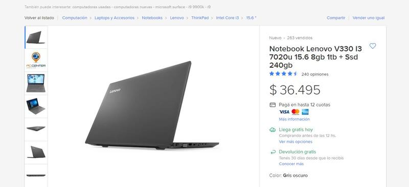 El precio argentino de una laptop de prestaciones medias-altas es de aproximadamente $ 36.495. Se trata de un equipo de con procesador Intel 3, 8GB de memoria RAM y mucha capacidad de almacenamiento (1 TB en disco duro y 240GB de SSD).