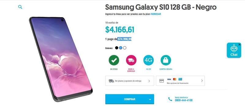 En nuestro país la diferencia radica no tanto en el precio sino en la diferencia de potencia de cada equipo. Las tiendas argentinas comercializan el Samsung Galaxy 10 de 152GB a $74.998,99 (que en dólares se traduce a u$s 1.314,92). Por casi el mismo precio el equipo que se puede conseguir localmente tiene menor capacidad de almacenamiento y es singificativamente más pequeño.