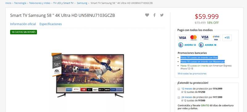 No está de más recordar que en el caso de las tiendas locales muchas veces se ofrecen otros beneficios que pueden compensar el precio más elevado: en el caso de la TV se puede abonar en 18 cuotas sin interés.