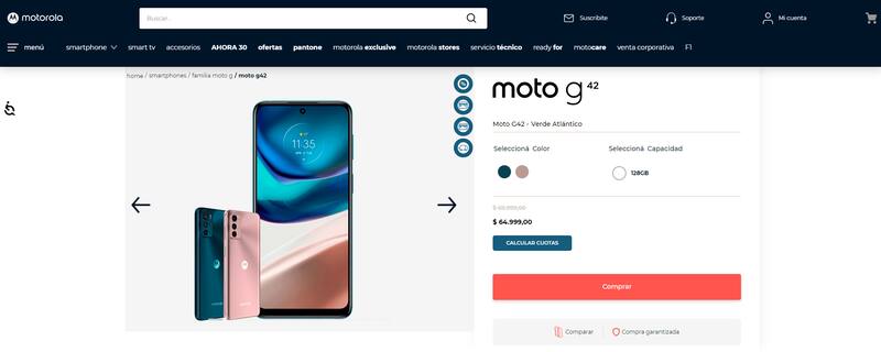 Actualmente, con el descuento oficial de Motorola, se puede comprar por su sitio web a $ 64.999 -en lugar de los $ 69.999 que sale normalmente- en dos colores diferentes.