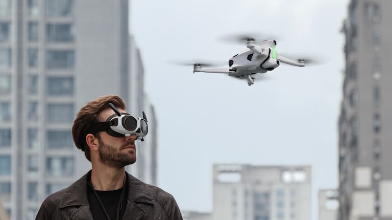 El equipo destaca por su integración con las Gafas Vision, un casco ultraligero de solo 340 gramos equipado con pantallas micro-OLED. Esta combinación ofrece una experiencia FPV (First Person View) con una resolución de 2560 x 2560 por ojo, equivalente a una pantalla gigante de 200 pulgadas con HDR10+, permitiendo al piloto sentir que realmente está en el aire.