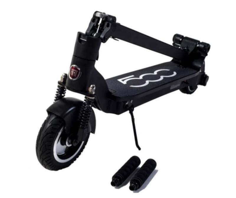 Fiat 500 E-Scooter plegable (F80r): Construcción resistente e ideal para adolescentes y adultos . Posee una base de aleación de aluminio de alta resistencia y un motor de 36v y 350w. Alcanza una velocidad máxima de 25 km/h y ofrece la posibilidad de subir terrenos con una inclinación de hasta 15 grados. Puede soportar hasta 120 kg y cuenta con una autonomía que oscila entre los 15 km y 20 km. Posee una batería de litio de 5200 mAh (con un voltaje de carga de 110v-240v y 50-60hz) que puede cargarse en un lapso de entre 2 horas y 3 horas. Además de ser una terminal plegable, posee una pantalla LCD que muestra el nivel de batería y la velocidad, entre otros datos. El E-Scooter va a una distancia al suelo de 12 cm, y tiene un peso neto de 13.5 kg. También es resistente a salpicaduras. E-Scooter tiene un precio al público de $ 42.990 pesos.