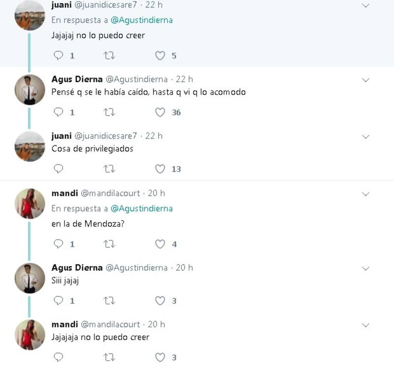 Luego Agustín confirma que la situación es "100% real" para especificar a continuación que en primera instancia pensó que se le había caído hasta que vio como lo acomodaba para terminar de equilibrar la mesa.