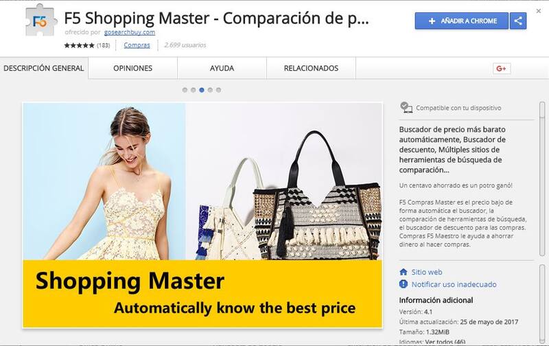 Shopping Master es una extensión para los navegadores de Internet (como Chrome o Firefox).