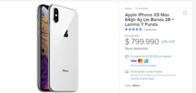 iPhone XS Max 64 GB en MercadoLibre Argentina.