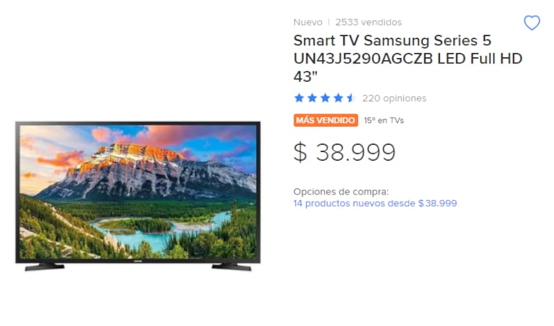 En MercadoLibre Argentina, un televisor Samsung 43 pulgadas cuesta $38.999. En MercadoLibre Chile, ese mismo televisor (incluyendo los respectivos impuestos) cuesta $27.719 pesos.