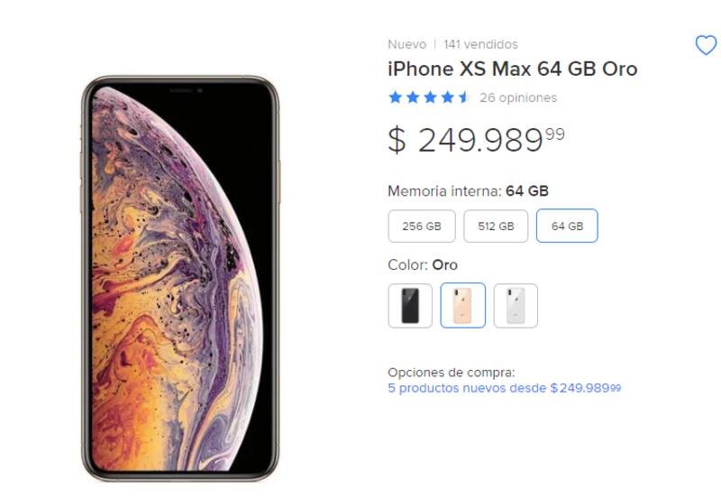 En MercadoLibre Argentina, un iPhone XS Max 64 GB cuesta $249.989. La diferencia de precio en productos Apple es alta. La tienda oficial Apple ya no vende el modelo XS nuevo, sin embargo el iPhone XR (una versión superior) continúa siendo comercializado y tiene un valor de US$ 499, unos $70 mil.