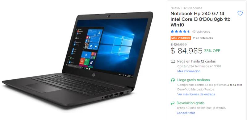 Notebook HP 240 G7, MercadoLibre Argentina.