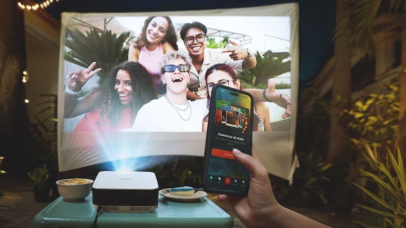 Y a esta experiencia inmersiva, Lifestudio suma una nueva dimensión: la capacidad de ir más allá del consumo de contenido. Gracias a la nueva aplicación Epson Projection Studio, el proyector se convierte en un lienzo colaborativo. Permite que amigos y familiares puedan enviar fotos y videos desde sus móviles para ser proyectados en tiempo real. De esta manera, una fiesta, una reunión o una simple puesta al día se transforman en una experiencia interactiva y compartida.