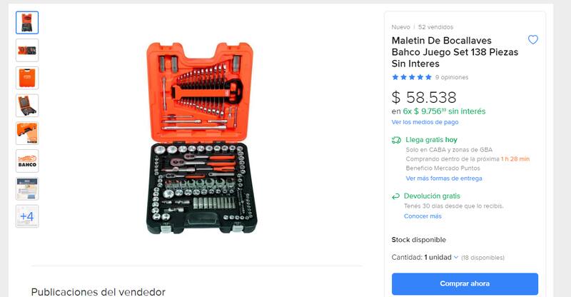Por ejemplo, un juego de herramientas Bocallaves de 138 piezas se consigue por casi $ 60.000. Sin embargo, a través de Amazon se consigue un juego más grande (de 216 piezas) más una cajonera de tres estantes por $ 103.000 (US$ 1064 a dólar oficial).