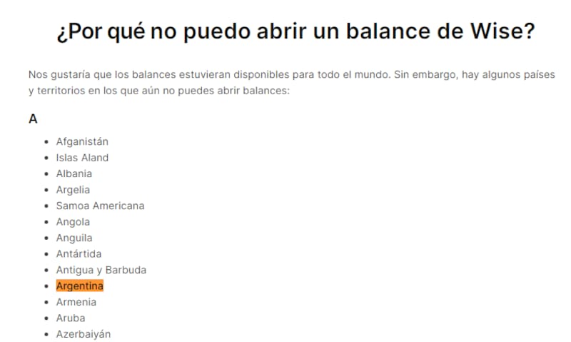 Si bien la empresa sigue funcionando en Argentina, actualmente el país se encuentra entre los que no pueden tener cuentas nuevas.