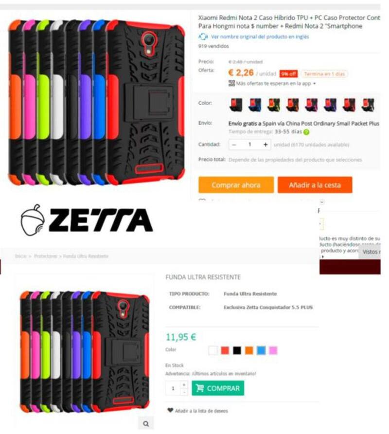 De hecho, hasta las fundas que comercializan los de Zetta son las mismas que pueden conseguirse en el sitio antes mencionado para el Xiaomi Redmi Note 3. Son exportadores, simple y sencillamente, que compran al menudeo en sitios de comercio electrónico y después revenden los productos. Eso sí: reetiquetando todo. Los números de venta de la “empresa extremeña son exiguos (1.200 equipos, contra los 70 milliones que los chinos vendieron el año pasado) pero son el síntoma de una obviedad: todo lo que puede conseguirse, puede conseguirse en China más barato, como demuestra el portal Movilzona.