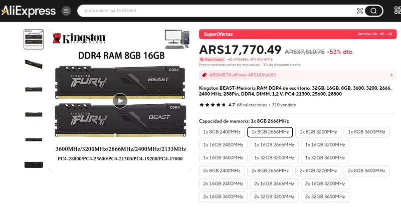 El sitio está actualmente ofreciendo ofertas tales como memorias ram con hasta 50% de descuento, lo que las deja a un precio de menos de $20.000 aunque a esto se le deben aplicar los impuestos correspondientes.