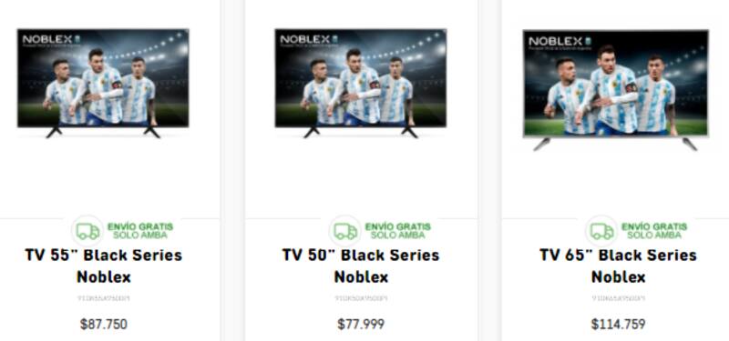 Los televisores del lineal cuentan con pantalla LED 4K y pueden conseguirse en diferentes tamaños: 50, 55, 65 y 75 pulgadas. Por el momento, en la tienda de Noblex solo pueden comprarse los modelos de 50, 55 y 65 pulgadas.