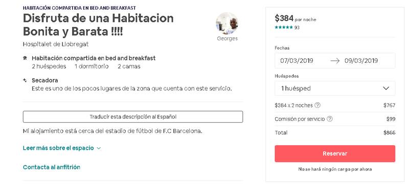 Lo primero es viajar al destino más barato, Barcelona, por la menor cantidad de días posibles para ahorrar en estadía. De avión, $ 27.026 (US$ 744).