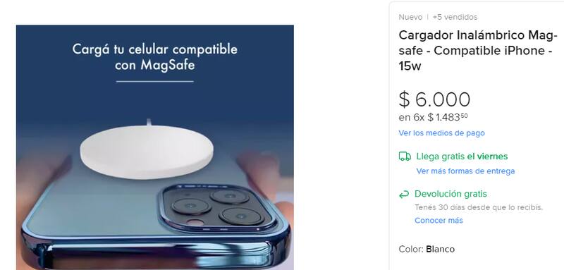 Por ejemplo, una de las ofertas compatible con iPhone se ubica a un precio de $ 6.000. En el caso de un cargador 3 en 1 (apple watch, iPhone y AirPods), podemos encontrar valores de hasta $ 19.999.