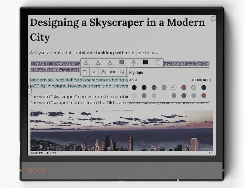 Más versátiles pueden resultar, para la mayoría de los usuarios, los modelos de tablets de la firma Boox, que ofrece pantallas de tinta electrónica a color y dotados de sistema operativo Android. Tal es el caso del modelo Note Air3 C, cuyo display puede mostrar una paleta de 4096 tonos y puede resultar ideal para dibujo o diseño.