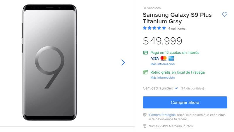 -Samsung Galaxy S9 Plus y Samsung Galaxy S9 ($ 49.999 y $ 44.999, ambos por Mercado Libre).