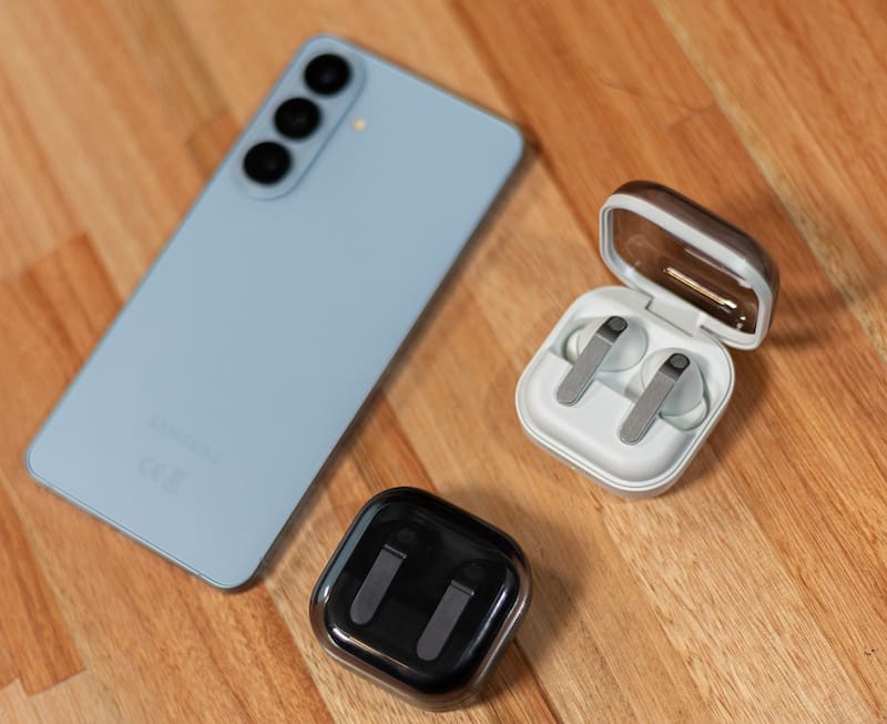 Junto con los teléfonos, Samsung presentó los Galaxy Buds4 Pro. Los nuevos auriculares vienen con un altavoz de 2 vías —woofer y tweeter— y cancelación activa de ruido (ANC). El Agente Galaxy AI integra Bixby y Gemini, y permite usar el modo Intérprete para traducir conversaciones en tiempo real. También incorporan controles gestuales: el usuario puede aceptar o rechazar llamadas con movimientos de cabeza.