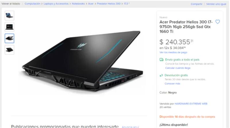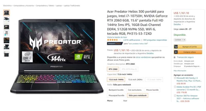 Uno de los principales diferenciales a la hora de comprar en el exterior son los precios. En productos de gaming, la diferencia puede ser muy marcada. Por ejemplo, una notebook Acer Predator Helios 300, con un procesador I7-9750h 16gb de memoria RAM, un disco de almacenamiento de estado sólido (que mejora la performance y la vida útil) de 256gb con una tarjeta gráfica Gtx 1660 Ti (un setup que permite jugar a los juegos más populares como Fortnite o League of Legends) se consigue por $ 240.000.