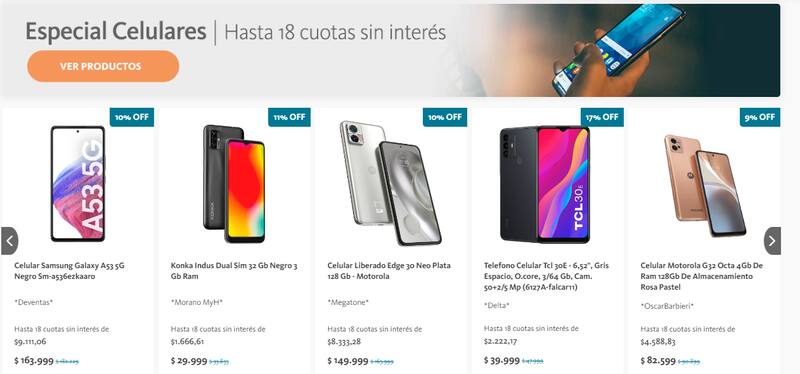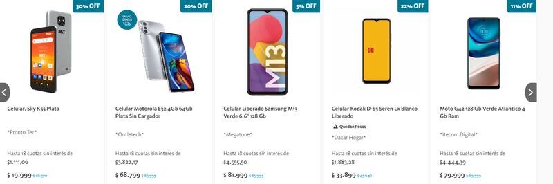 Los descuentos van del 5% al 30%. Hay modelos de diferentes precios y gamas, desde algunos económicos y pensados para usuarios que recién se inician (como el modelo Konka de 32Gb, que se vende por $ 30.000) hasta modelos más avanzados como el Motorola G32, un dispositivo de 4GB de ram y 128 de almacenamiento (que en este caso se vende por $ 83.000).