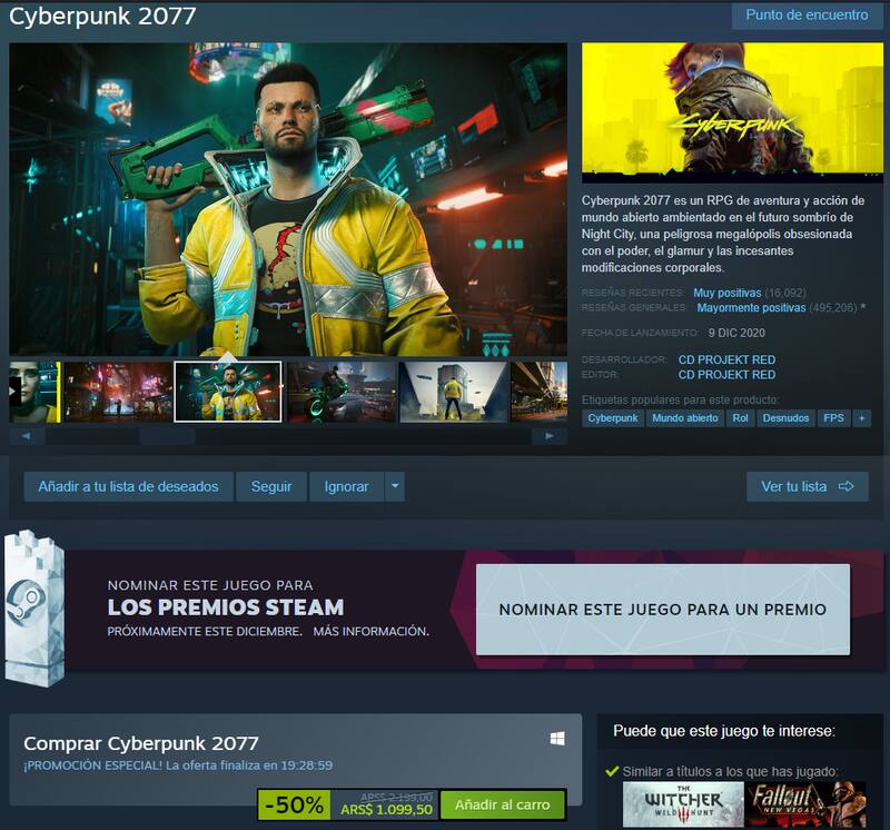 Es uno de los juegos más debatidos del año y se encuentra con un 50% de descuento. Es un juego de disparos en primera persona ubicado en un futuro distópico de alta tecnología. Se puede comprar por $ 1.100 sin contar impuestos.