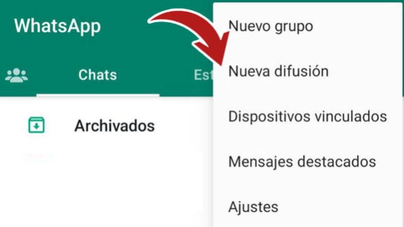 - Elegir la opción "Nueva difusión" y tocar los contactos a los que les llegará el mismo mensaje