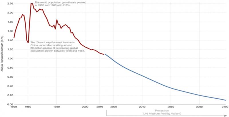 Pero, de nuevo, esta vez puede ser diferente. Uno de los motores de absorción del cambio tecnológico fue la natalidad. A medida que había más nacimientos y más expectativa de vida se generaban nuevos potenciales empleados para nuevos potenciales puestos (como por ejemplo empresas que no tenían el dinero para automatizar su capital al completo). Las proyecciones sobre la natalidad son muy diferentes a lo que eran hace 1, 10 o 100 años.