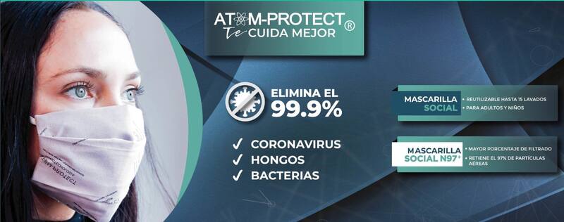 La tela de los barbijos Atom-protect son de algodón y poliéster. Están compuestas de un polímero eco-friendly que facilita la retención de agentes activos basados en plata y cobre.