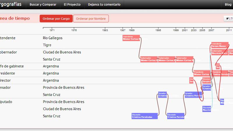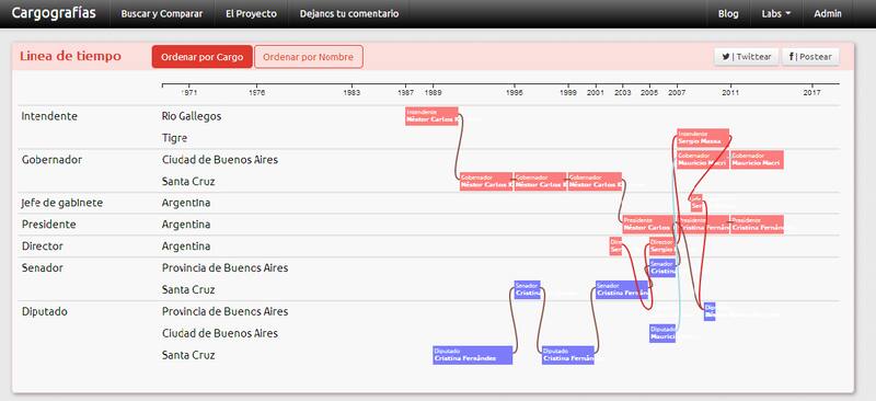 Con la idea de simplificar este problema y brindar mayor información para comprender la actualidad argentina, el diseñador Andrés Snitcofsky desarrolló Cargografías junto a Alejandro Baranek, Daniel Caligaro, Ramiro Chanes, Daniel Magliola, Pablo Paladino y Martín Rubi. Se trata de una herramienta web que permite posicionar en una línea de tiempo los cargos públicos que tuvieron los funcionarios a lo largo de su carrera.