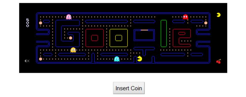 El 21 de mayo del 2010, Google amaneció con una réplica del clásico Pac-Man en lugar de su logo. Aquellos fanáticos de los videojuegos no pudieron dejar pasar esta tentación y dedicarle, aunque sea, algunos minutos a perseguir a los populares fantasmas de colores. Además, el botón de buscar también cambió y fue suplantado por un "Insert coin". Click acá para jugar al juego.