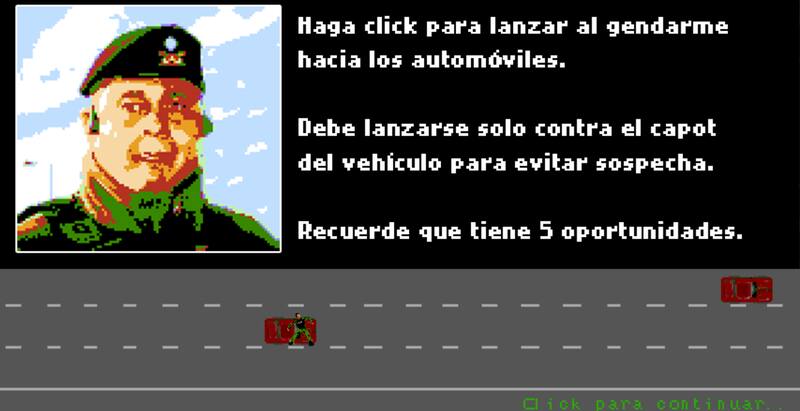 Un gendarme corriendo por una autopista. Salta sobre el capó del auto y rompe el vidrio del vehículo. Lo que parece una escena digna de una película de Steven Seagal, pasó realmente en Buenos Aires. La escena del bautizado "gendarme carancho" se volvió parte de todos los noticieros. Pero lo que podría ser una película también puede ser un videojuego. Tomando esta situación, desde Shitty Games crearon Gendarmer, un juego online con una estética de los clásicos títulos de arcade en donde el usuario puede lanzar al militar contra los autos que pasan por la ruta.