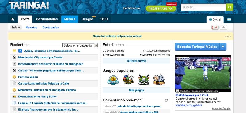 En tiempos en donde sus fundadores deben enfrentar un juicio oral por violación de derechos de autor, el crecimiento de Taringa! a nivel regional continúa. De hecho, según la empresa, México superó a la Argentina por primera vez con más de 16 millones de usuarios por mes, dejando al país en un segundo puesto con más de 15 mil 500 millones y a España en una tercera posición con más de 9 millones.