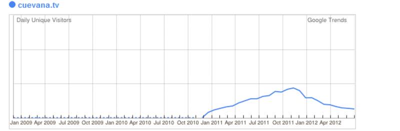 Para abril de 2012, Cuevana contaba, según su dueño, con 15 millones usuarios únicos por mes, provenientes en su mayoría de la Argentina, México, Chile, Colombia y Venezuela. La herramienta Google Trends, muestra que las principales búsquedas de la palabra “cuevana” desde el 2010 a la fecha provienen de dichos países. Pero la cantidad de búsquedas de este término como de “cuevana.tv” viene cayendo desde esa fecha, con un breve repunte en los últimos días donde se conoció que el plugin de Firefox del sitio contenía código malicioso y habría robado datos de estos usuarios.