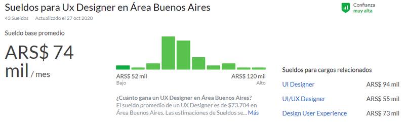 En este caso, un Data Analyst gana alrededor de $ 70.000, mientras que un UX/UI Designer están entre $70.000 y $90.000. Siempre según datos de Glassdoor.
