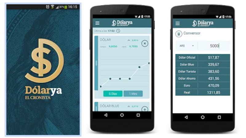 Es una aplicación similar a la anterior aunque con menor opciones de monedas. Ofrece el valor oficial y blue (paralelo) del dólar, para la compra y venta. Además brinda una calculadora de conversión de cambio para ambos tipos de cambio y muestra la evolución de las cotizaciones en los últimos 30 días. Hay versiones para iOS y Android.