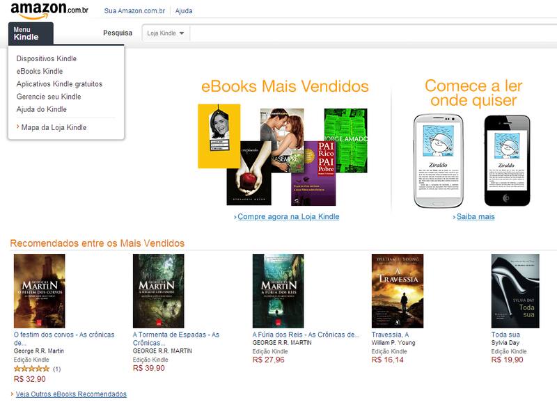 Amazon comenzó a vender e-books en Brasil desde su propio sitio para el mercado local. Según sostuvieron desde la empresa, en Amazon.com.br se ofrece un catálogo de más de 1,4 millones de libros electrónicos, de los que 13 mil se encuentran en idioma portugués. Además, anunciaron que venderán la Kindle a un valor de R$ 299, alrededor de US$ 150.