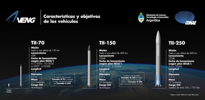 VENG es la empresa principal detrás del proyecto, trabajando junto con la Conae, pymes y universidades. Cabe destacar que el proyecto es de origen nacional.
