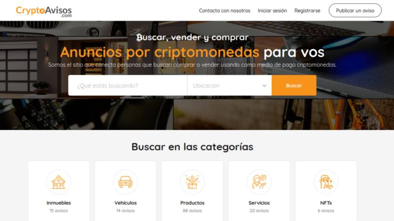 En la Argentina, se puede operar a través de varios sitios dedicados a estos. Uno de ellos es Crypto Avisos, una plataforma similar a los principales sitios e-commerce del país que vende inmuebles, vehículos, productos, servicios, NFTs y dispositivos para minar y solo acepta precios expresados en criptodivisas.